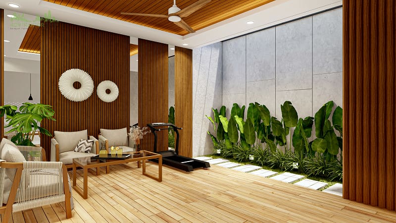 Gaya tropis modern sangat cocok untuk hunian yang berada di iklim hangat. Konsep ini menonjolkan koneksi indoor-outdoor, penggunaan material alami seperti kayu dan batu alam, serta dengan tanaman hijau di beberapa sudut ruangan.